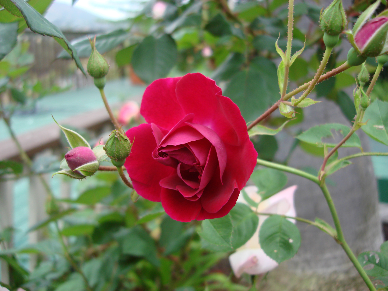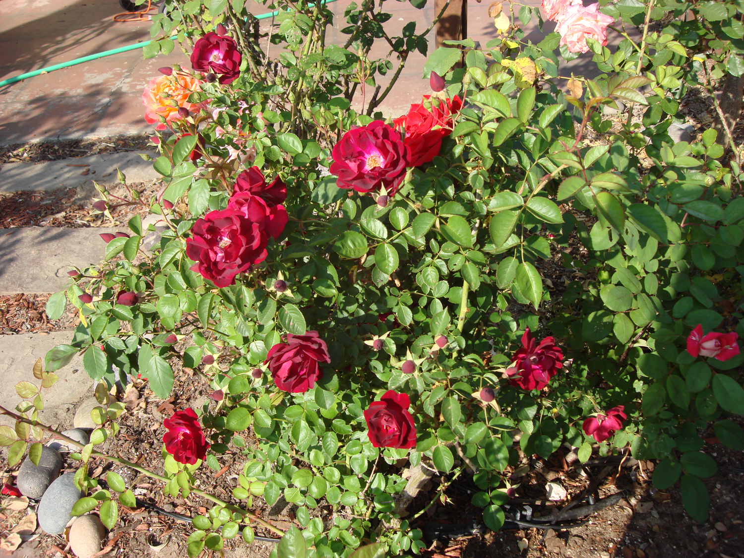 Late April 2008 You can see the cultivated rose that was taken over in this picture. It's the slighty brighter/lighter and larger red rose kind of to the left. |