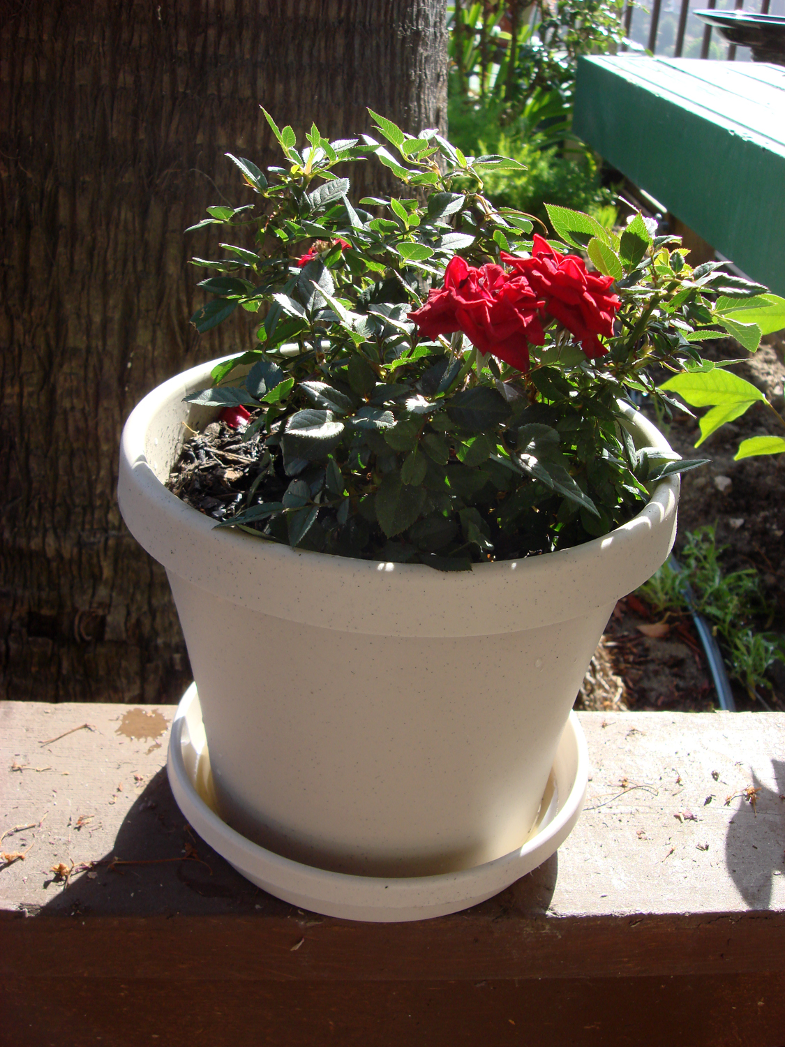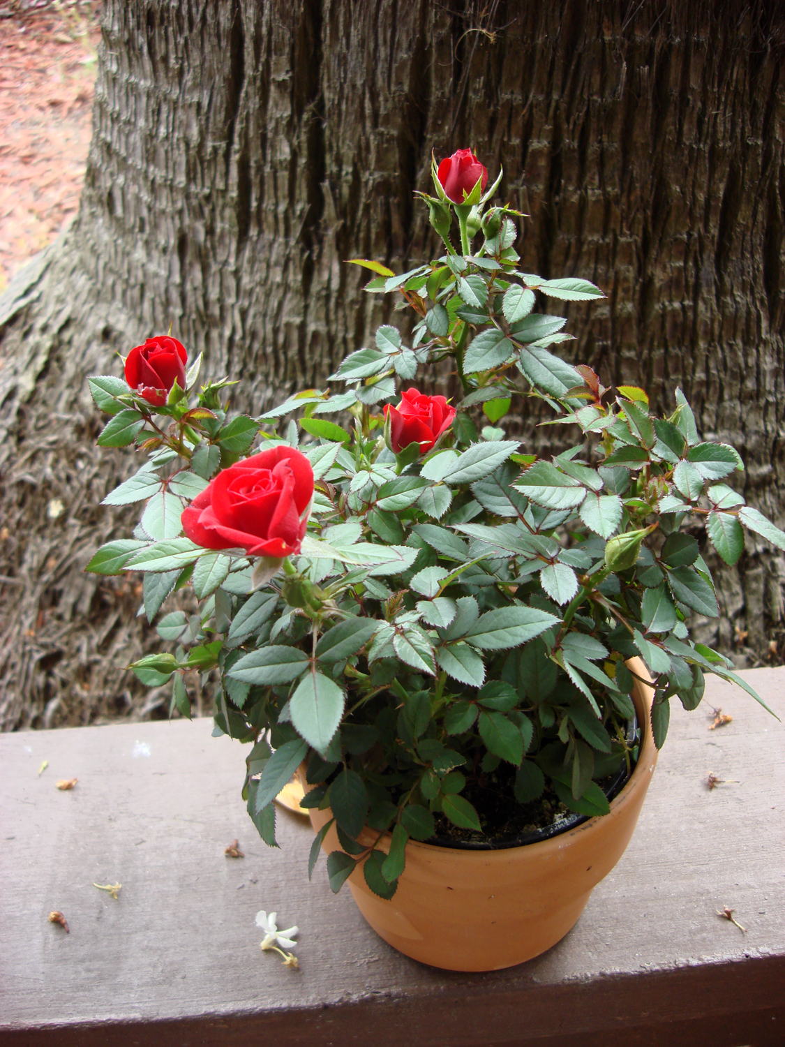 I spotted a miniature rose at one of the nurseries and randomly decided to get it. It's been growing - got repotted - and looks pretty.